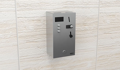 Recessed coin and token shower timer for one to three showers, 24 V DC, choice of shower by…