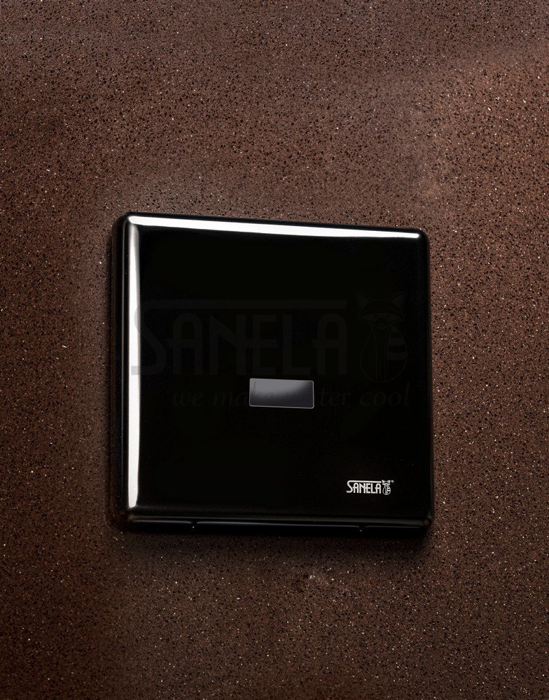 Urinal infra-red flushing unit with a mounting box and integrated power supply, black, 230 V AC