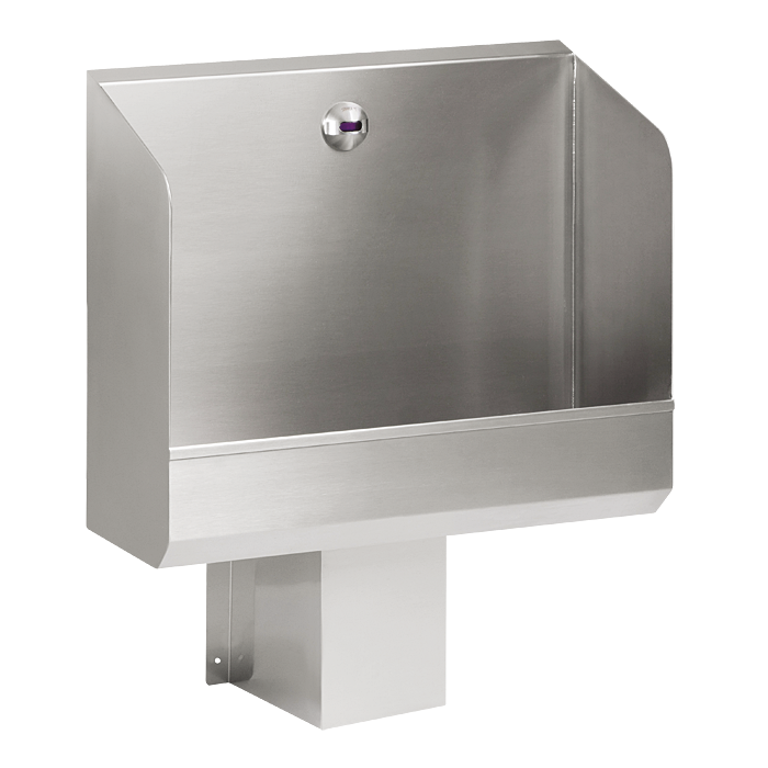 - stainless steel wall hung urinal trough with integrated infra-red electronics