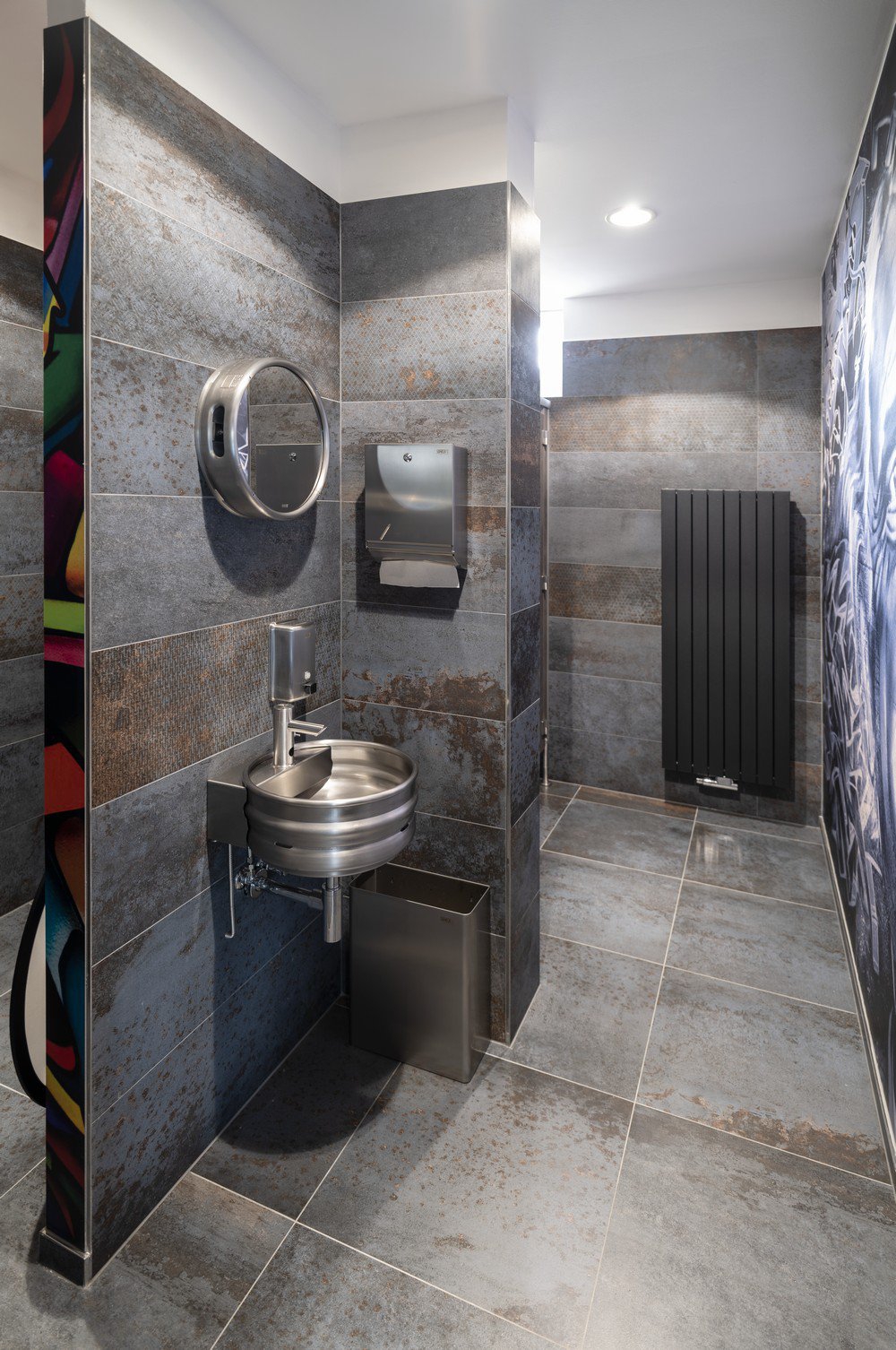 - stainless steel wall hung urinal with integrated infra-red electronics