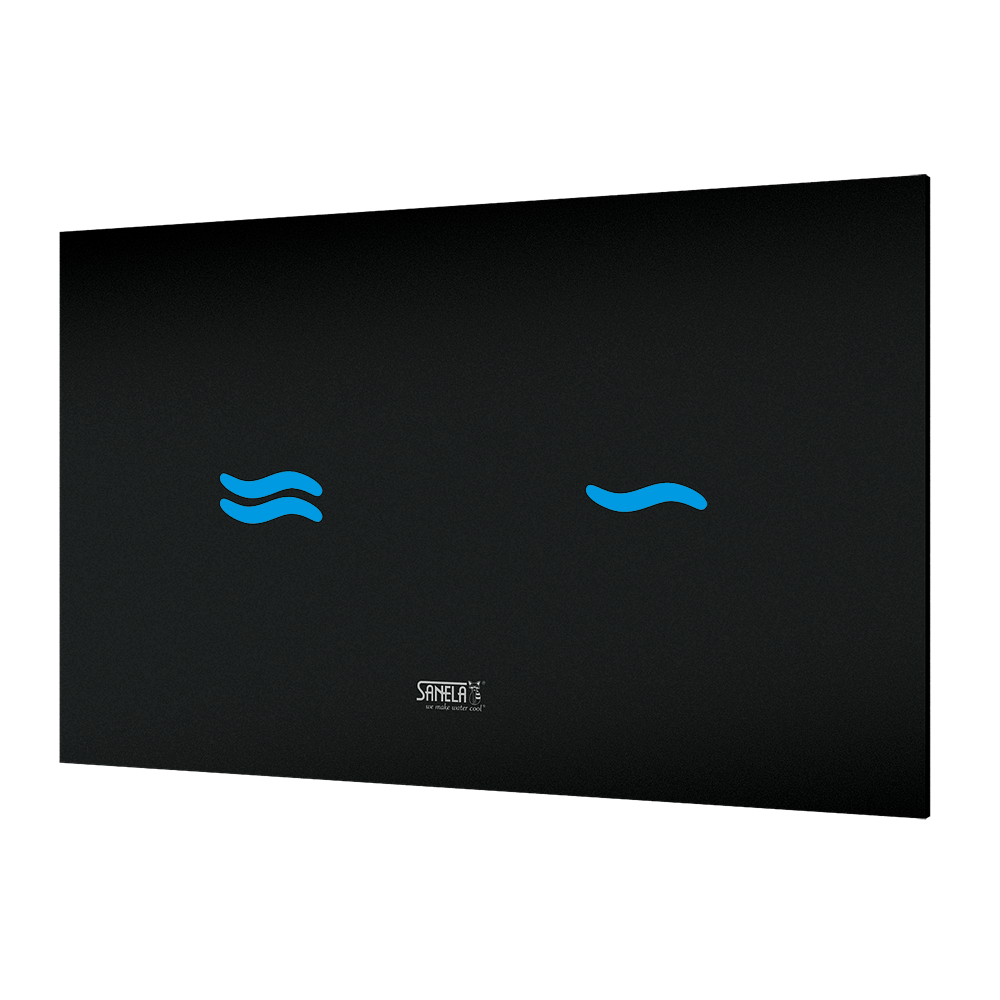 Electronic touch toilet flushing unit, glass colour REF 9005 black, backlighting blue, 24 V DC