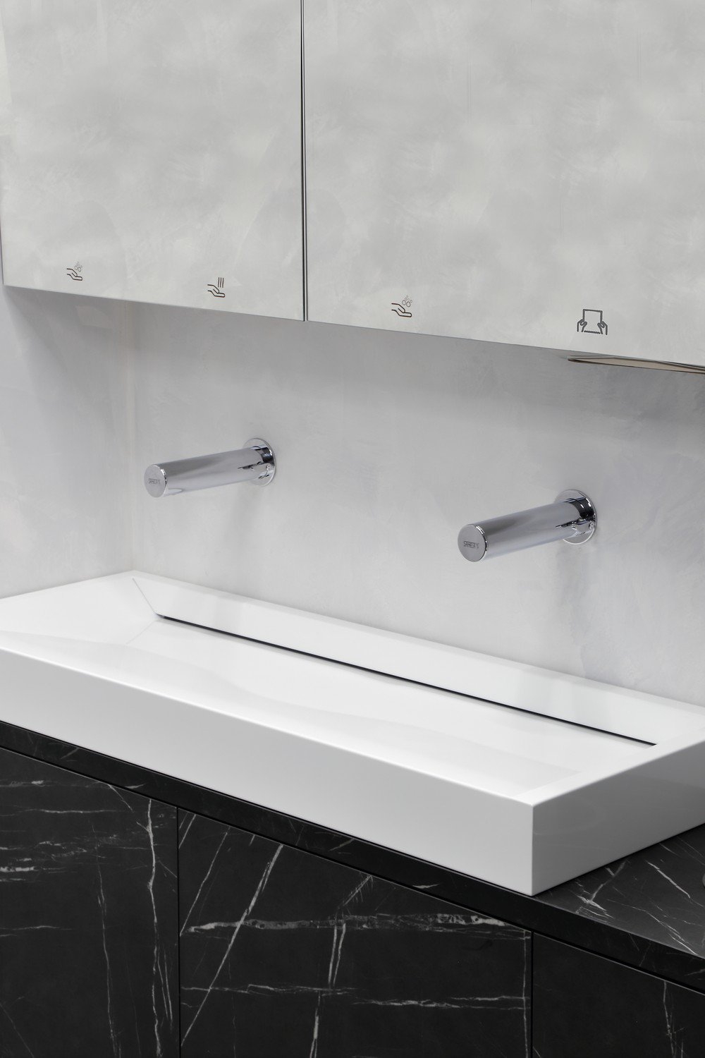 - one dose of soap is flowing as hands are in the active range under the mirror (can be set in range 1,3 - 13 s), standard 2,6 s